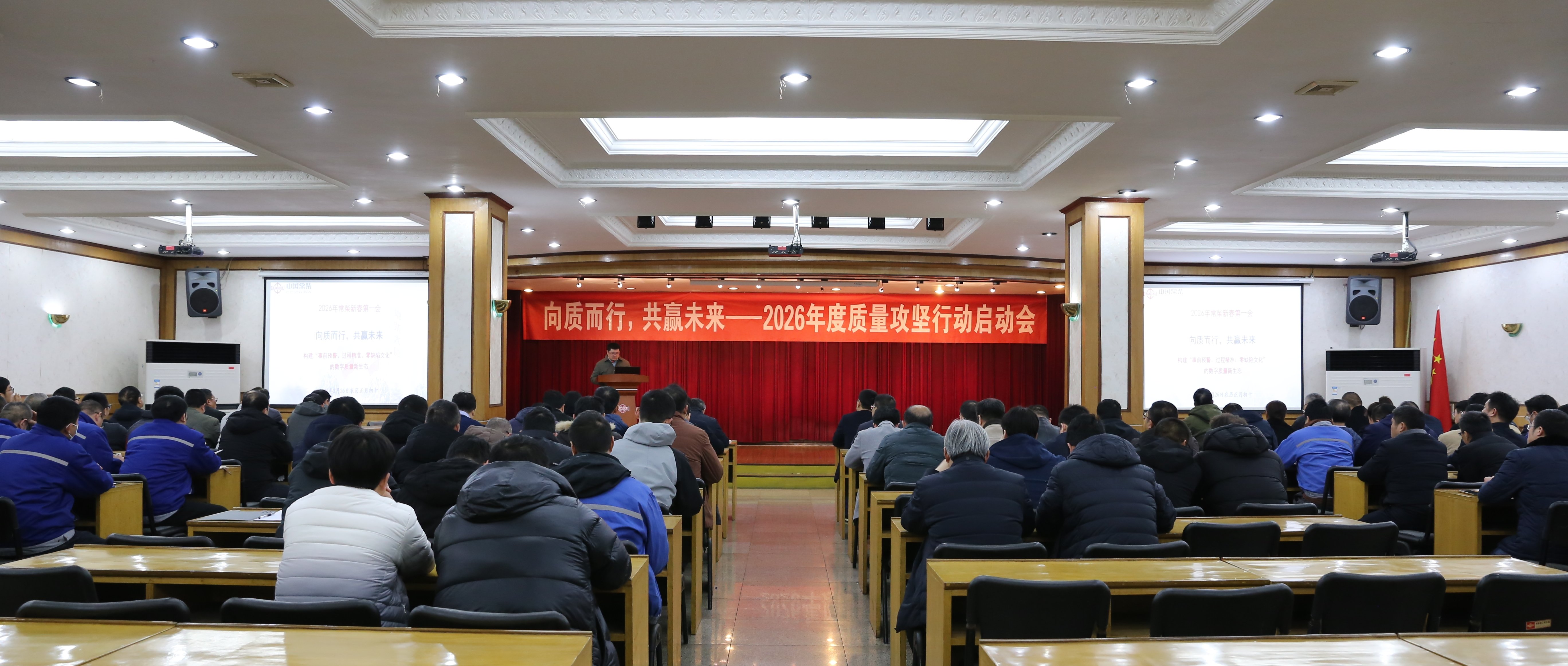 2月26日,公司以“向质而行,共赢未来”为主题,隆重召开2026年度质量攻坚行动启动会。公司董事长沈喆、总经理谢国忠等公司领导,及各制造厂、相关职能部门、部分子公司负责人与员工骨干共同参会。